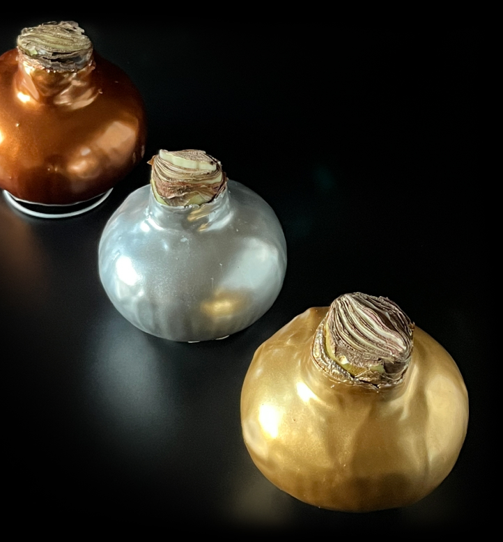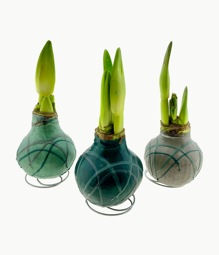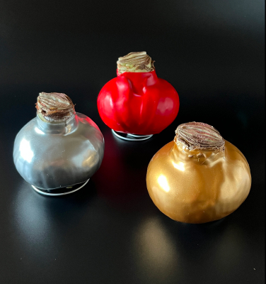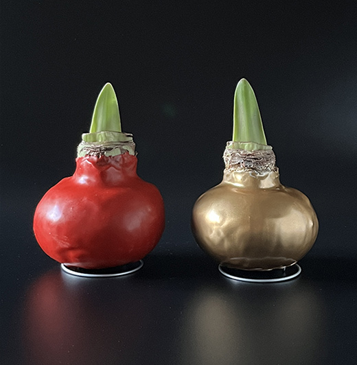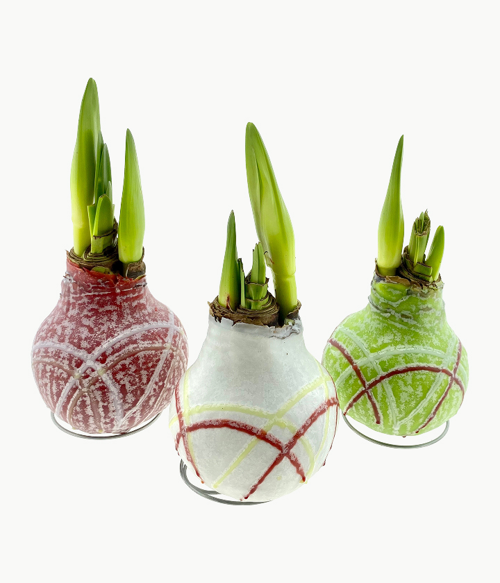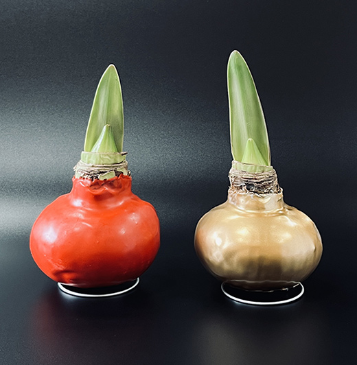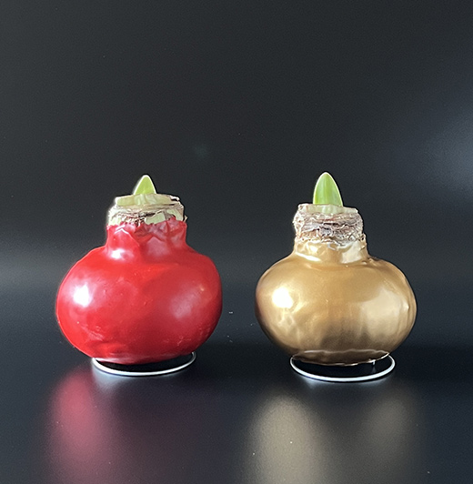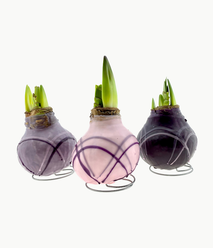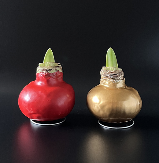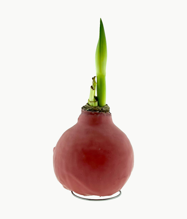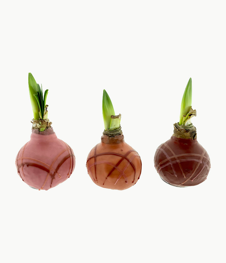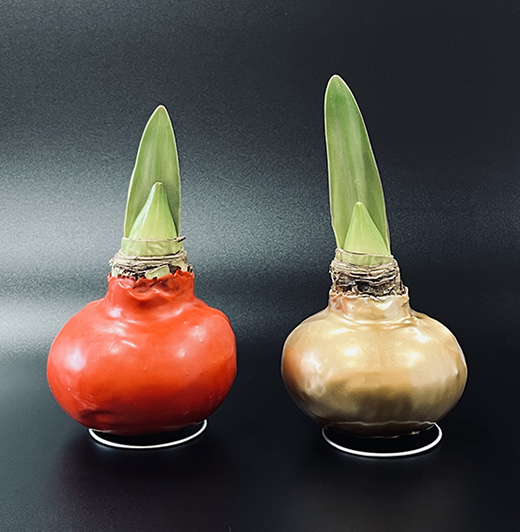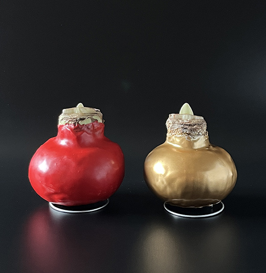 ワックスで美しくコーティングされた、直径約9㎝の大きな球根です。そのままお部屋の窓際に飾れば、かわいいインテリアにもなります。
