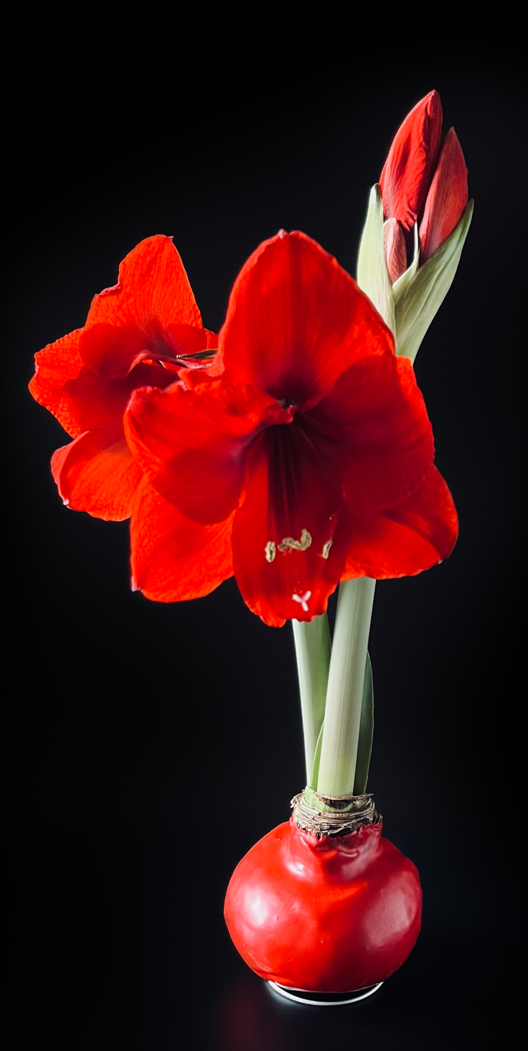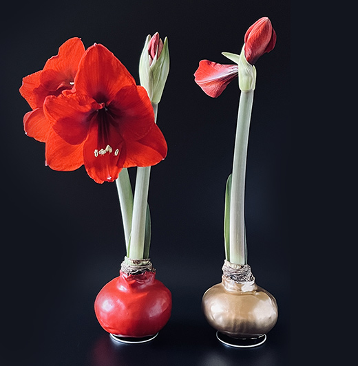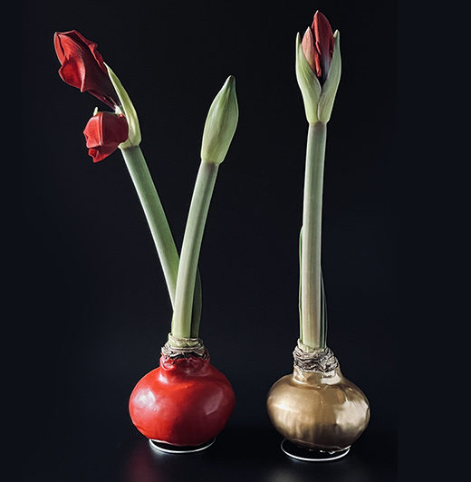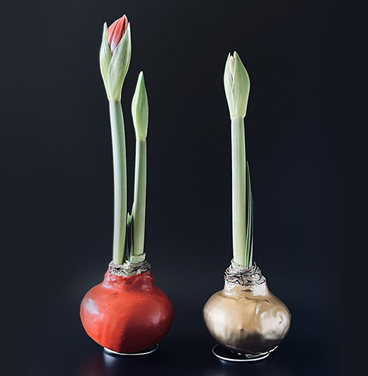 ただ、何といっても一番の特徴は、なんと、“お水を上げなくても、大輪のお花を咲かせてくれること”! 球根に、たっぷりと水分と栄養を蓄えているから、お水を与えなくても、窓からの間接光で茎が伸び、大輪のお花を2輪以上咲かせてくれるんです!軸当たり2輪から4輪。茎が2軸出てくれば、最大8輪のお花が次々と咲き誇り、お部屋を彩ります。*1